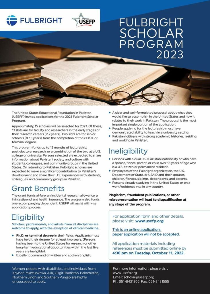 Fulbright scholarship awards are under the USEFP the United States Educational Foundation Pakistan. Pakistani candidates who wanted to do some Master/Ph.D. Programs. The selected one can share the social culture and norms with others. USEFP will also assist you in the visa process.