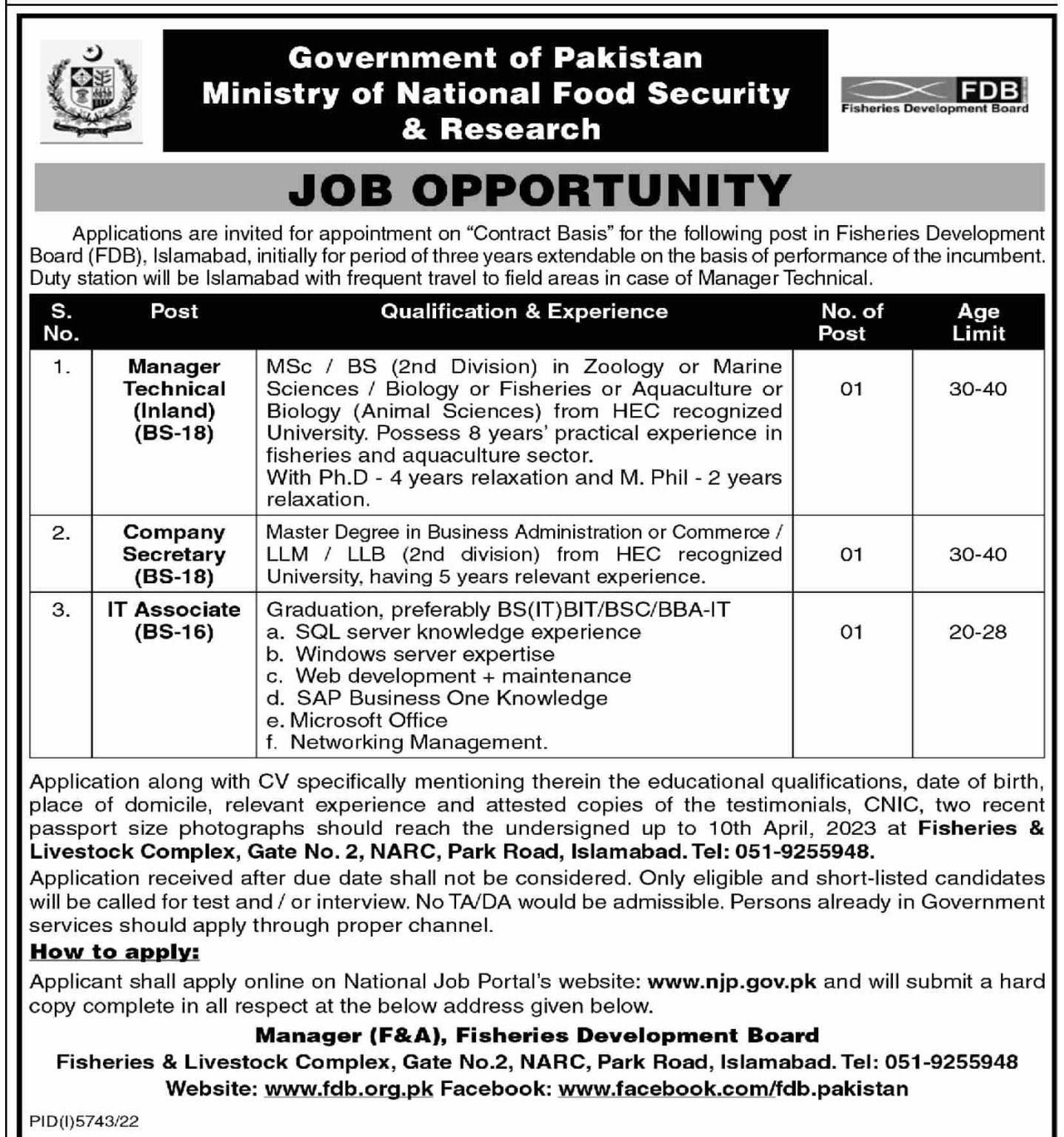 Government of Pakistan Ministry of National Food& Security Job Opportunities 2023