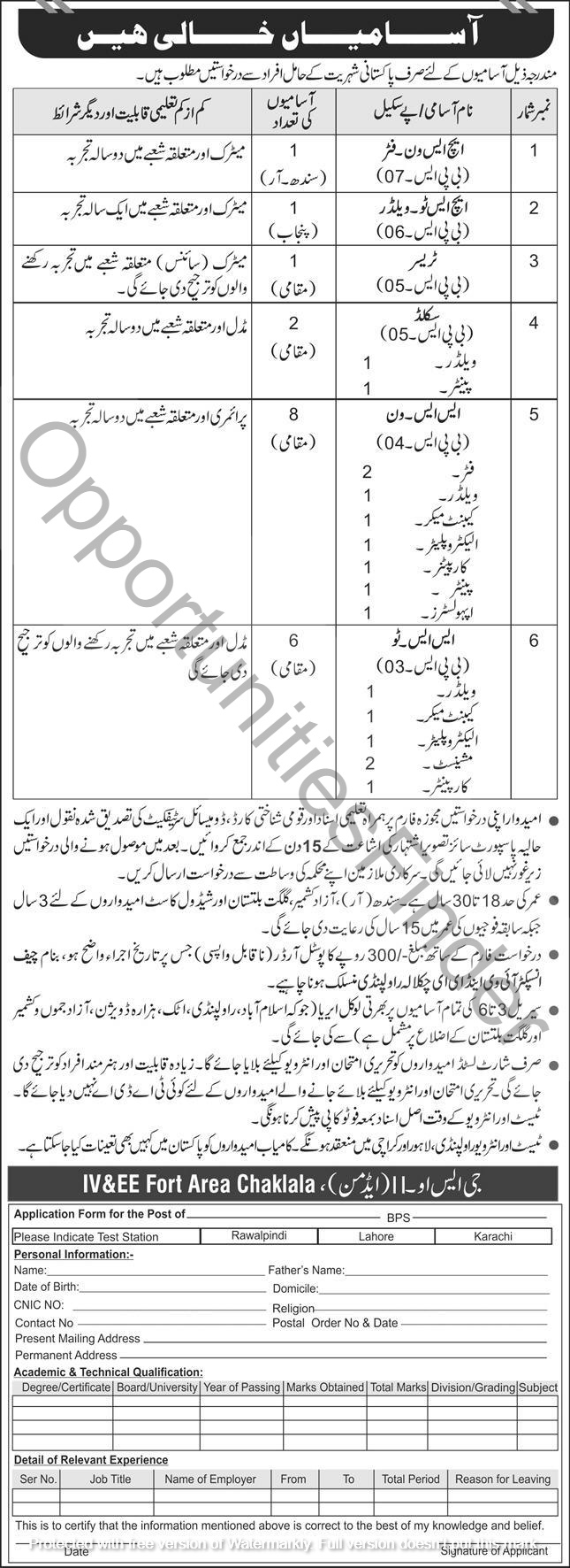 3Rupees 300 postal order must be attached with the application form. Local area vacancies will be hired from the local areas like Islamabad, Rwp, Attock, Attock, Hazara.